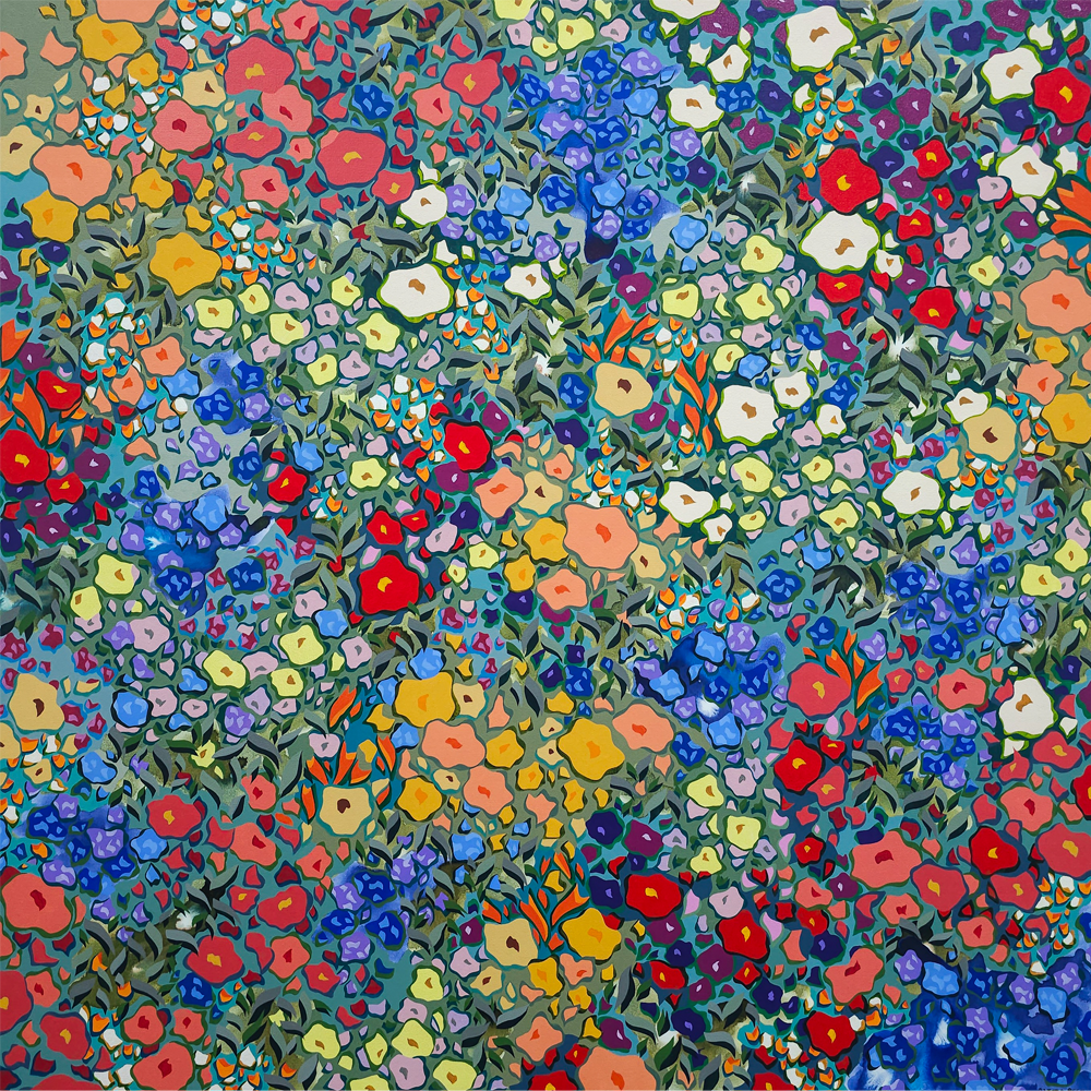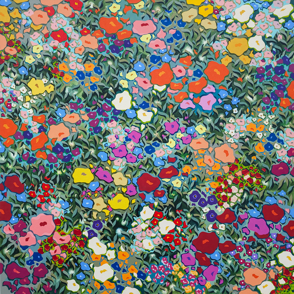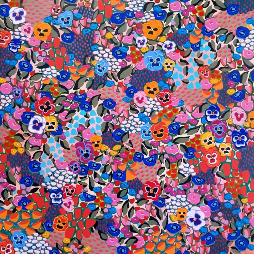 Alicia always focuses on natural motifs, and her paintings give attention to detail through both geometric patterns and shapes reminiscent of fragrant blooms. Alicia’s style can be described as a dynamic bridge between abstract and representational imagery. Her theme is transmutable, much like the constantly evolving flora narrative she is inspired by.