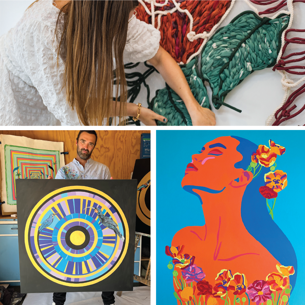 This exquisite show will celebrate the dynamic use of colour where creativity meets curiosity, showcasing an array of florals, textiles, screen prints, and acrylic paintings. Frankie captivates the imagination with intricate floral textiles that blend tradition and modernity. Sam’s acrylic paintings and screen prints dazzle with bold, geometric patterns and vivid colours. While Agate’s acrylic paintings mesmerize with their fluid forms and expressive use of colour.