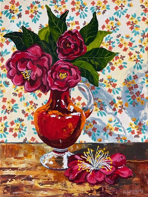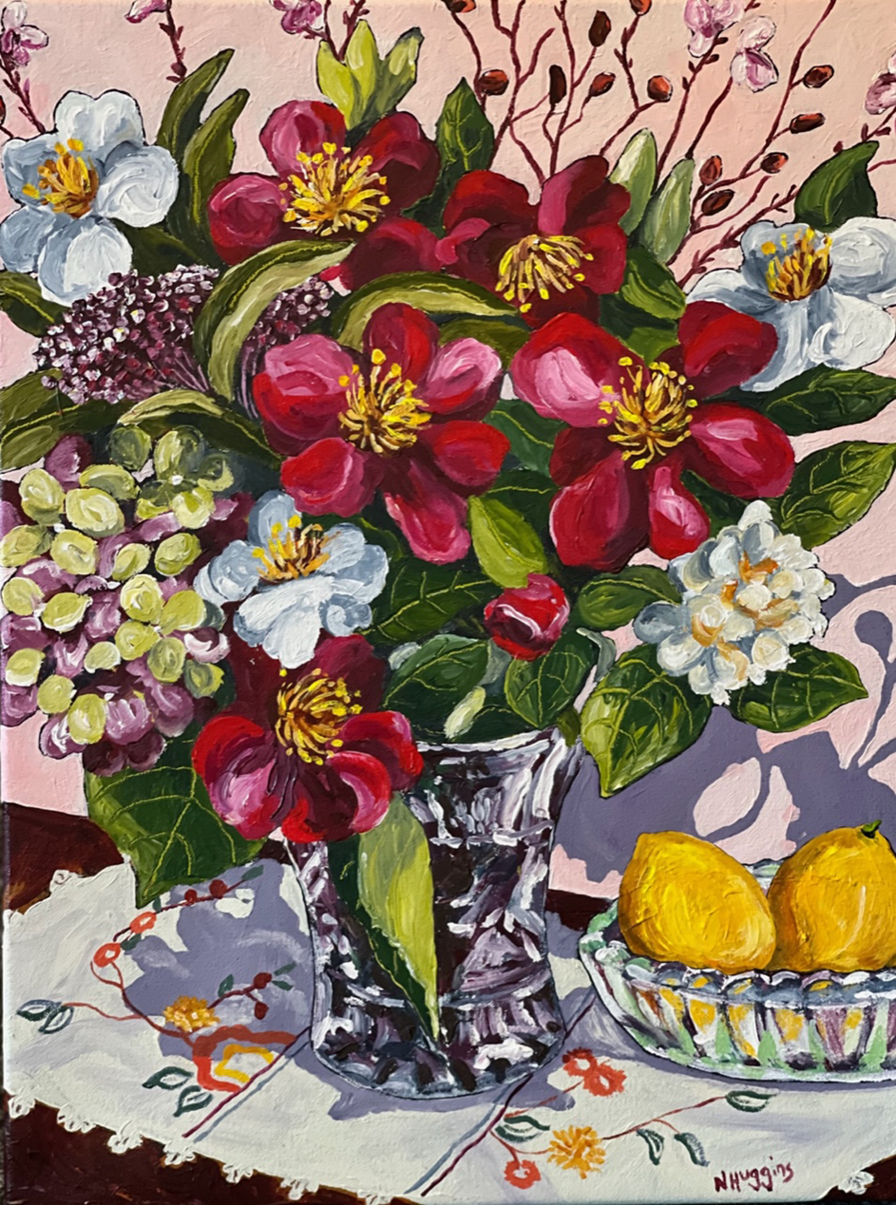 With a keen interest in mid-20th century design, Narelle often includes ‘vintage’ pieces in her still life paintings, which draw on a nostalgic connection to time. Alongside a love for all things botanical, the subjects of her still life paintings are mostly harvested from her own garden.